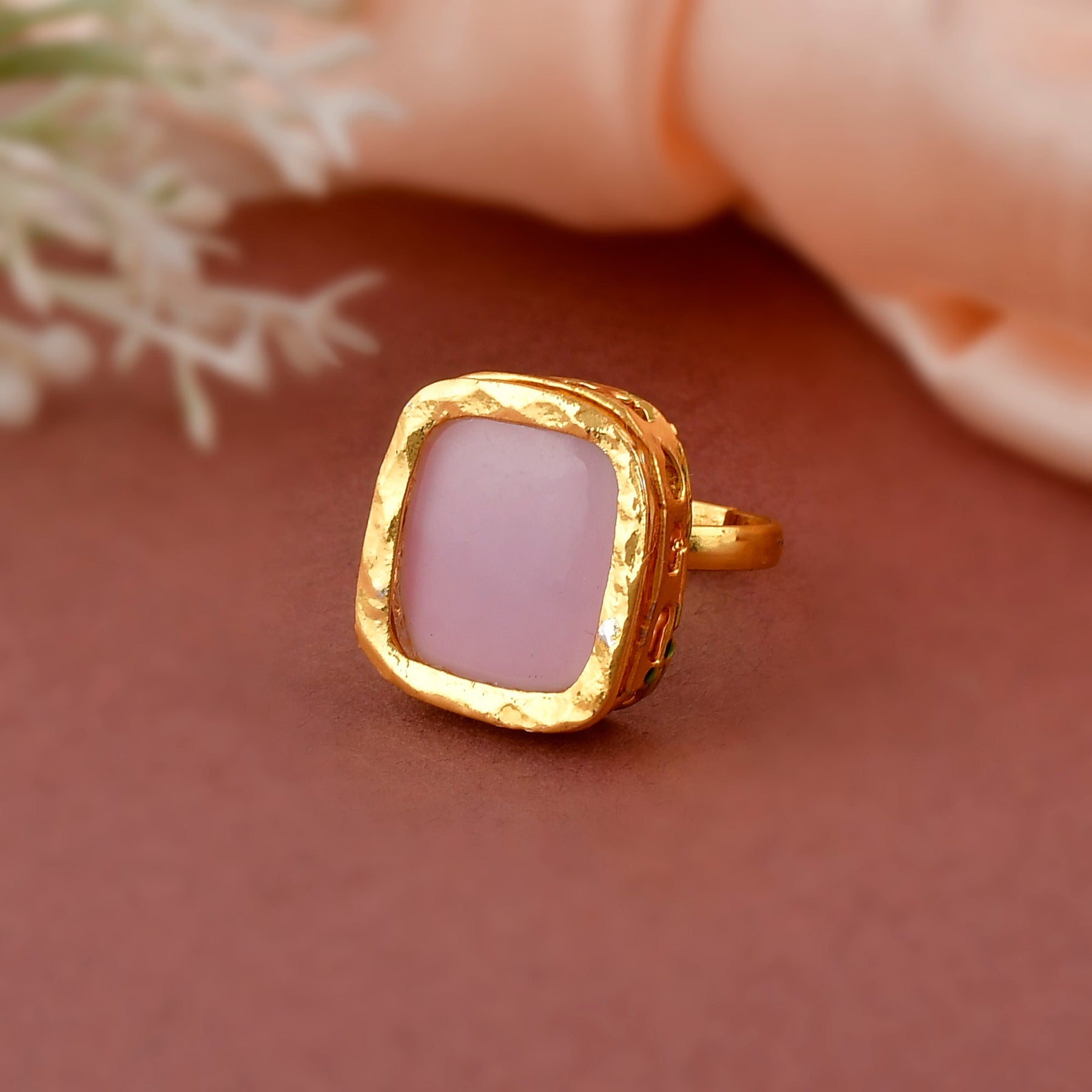 DASTOOR Gold-Plated Pink Kundan-Studded Finger Ring