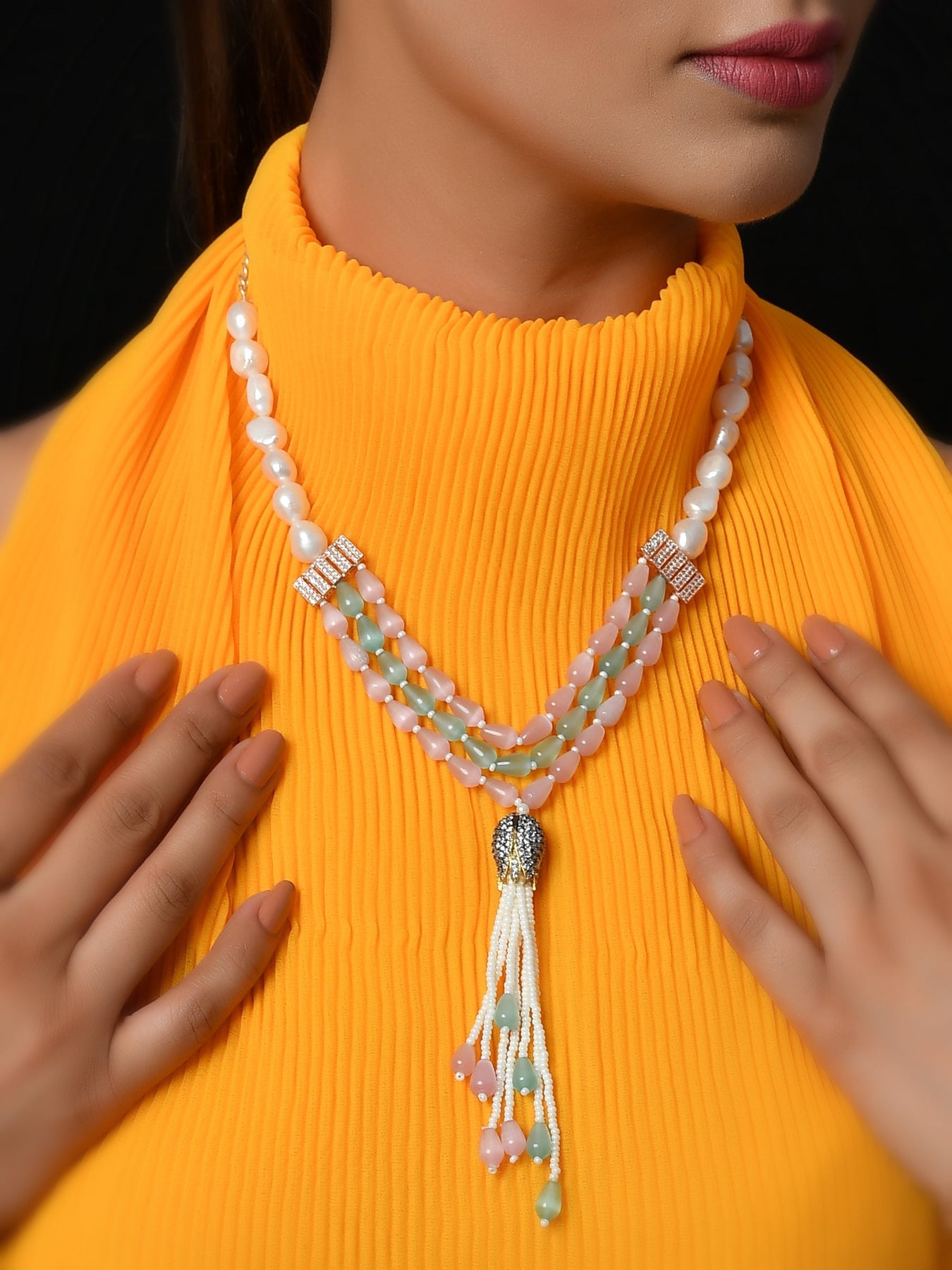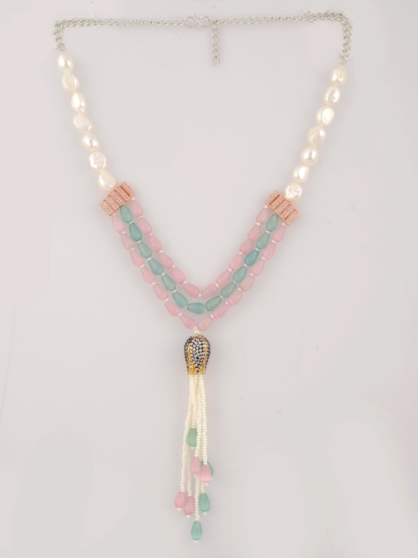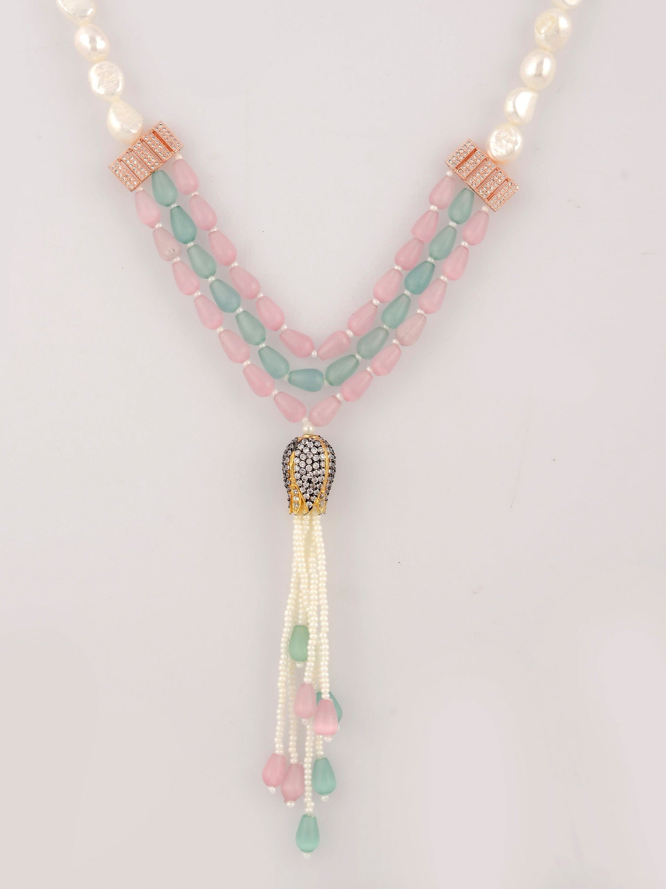 Dastoor Pink Green Brass Gold-Plated Necklace