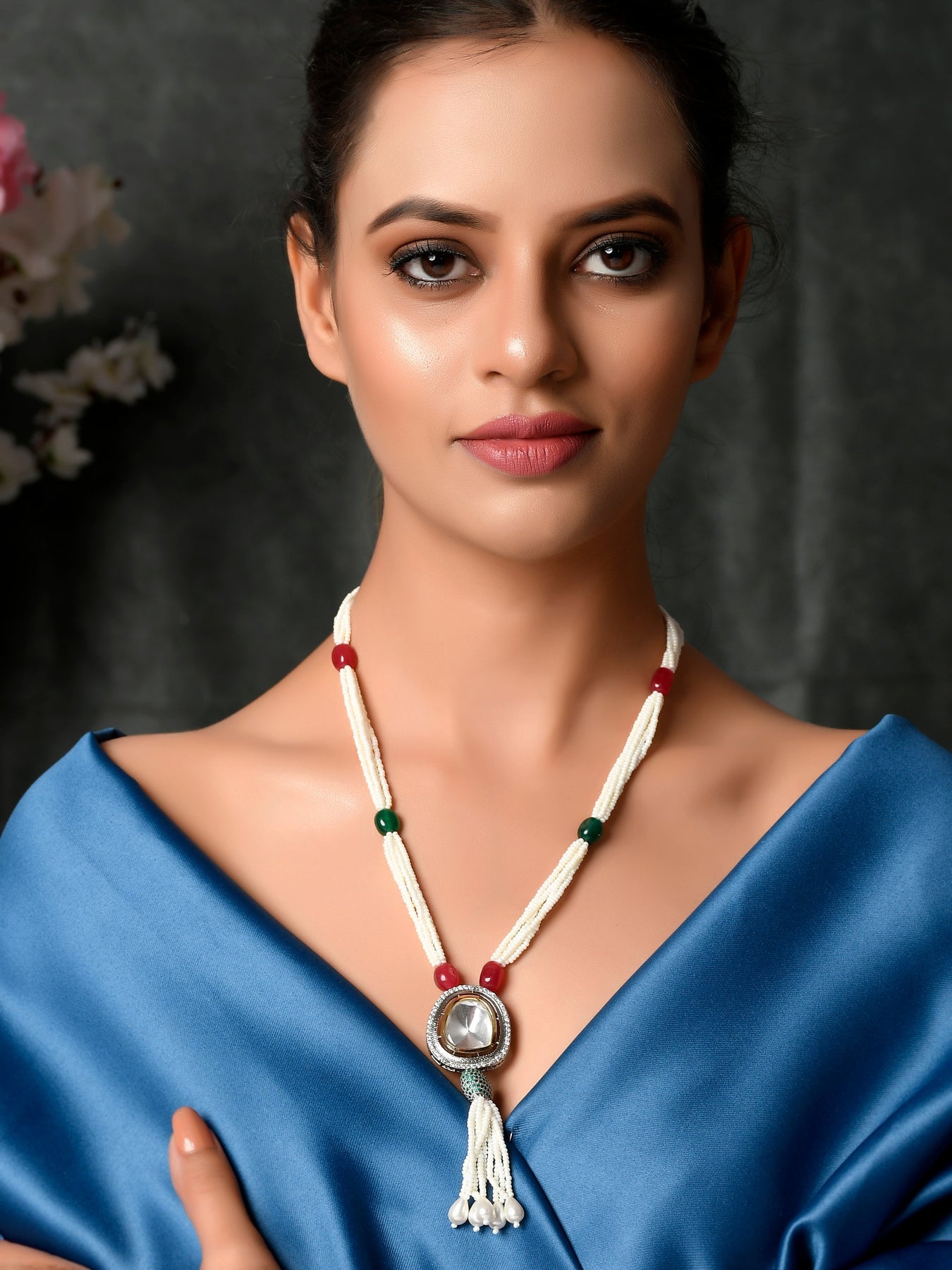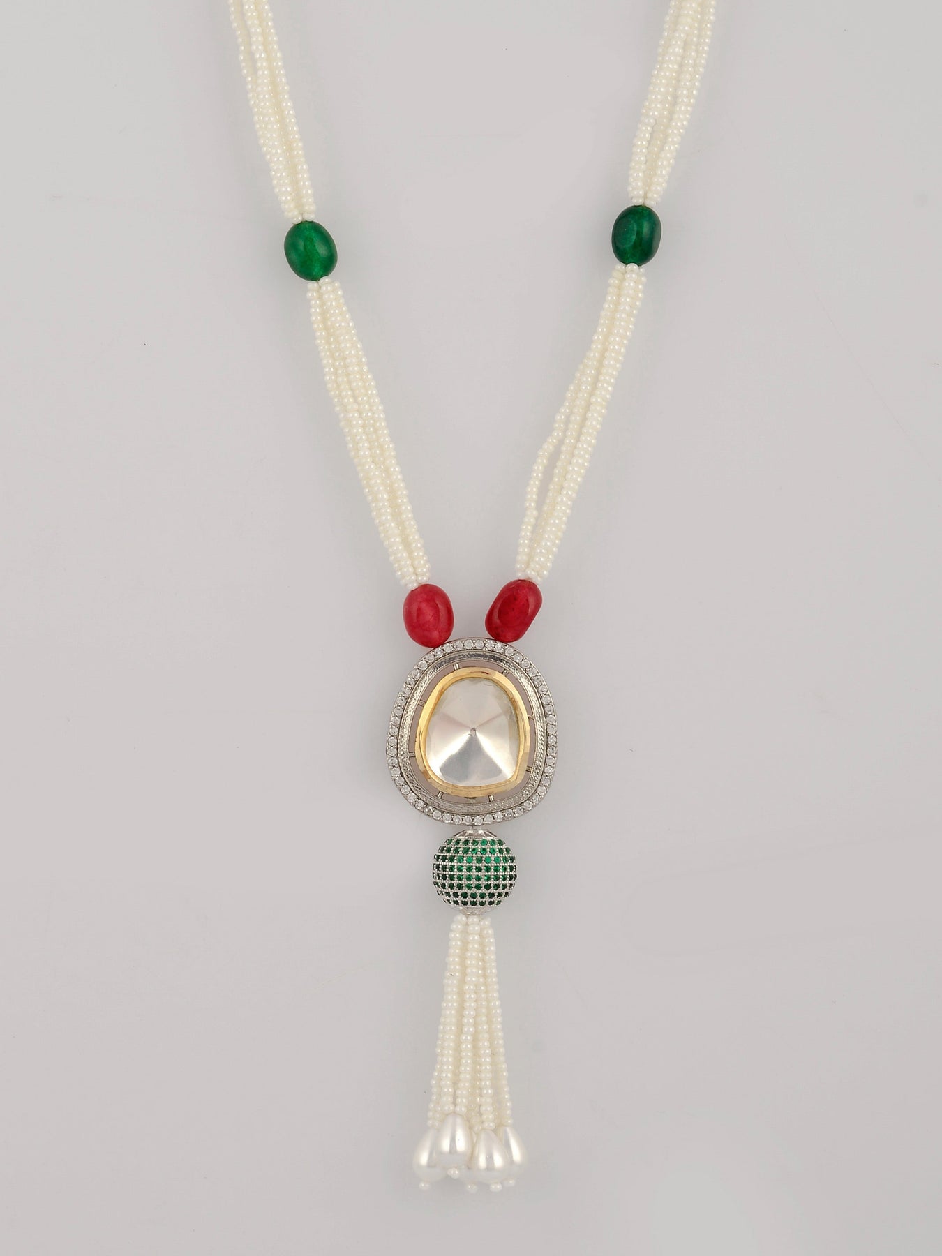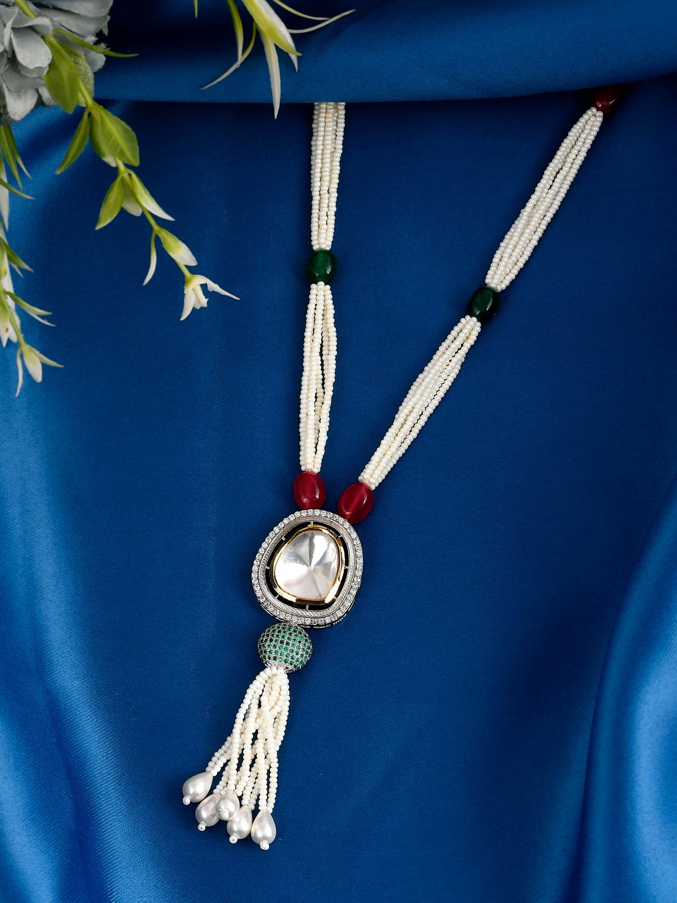Dastoor White Maroon Brass Gold-Plated Necklace