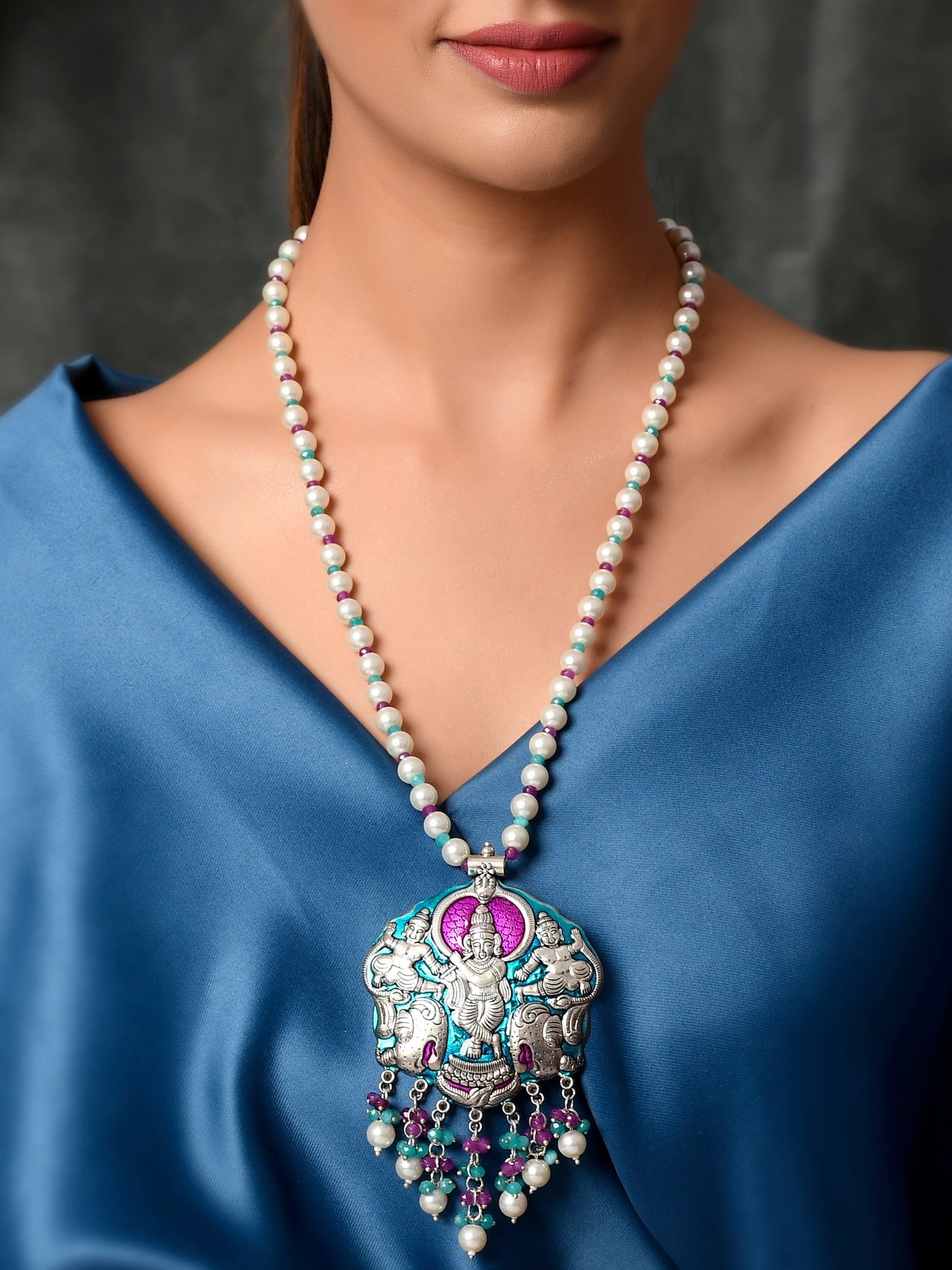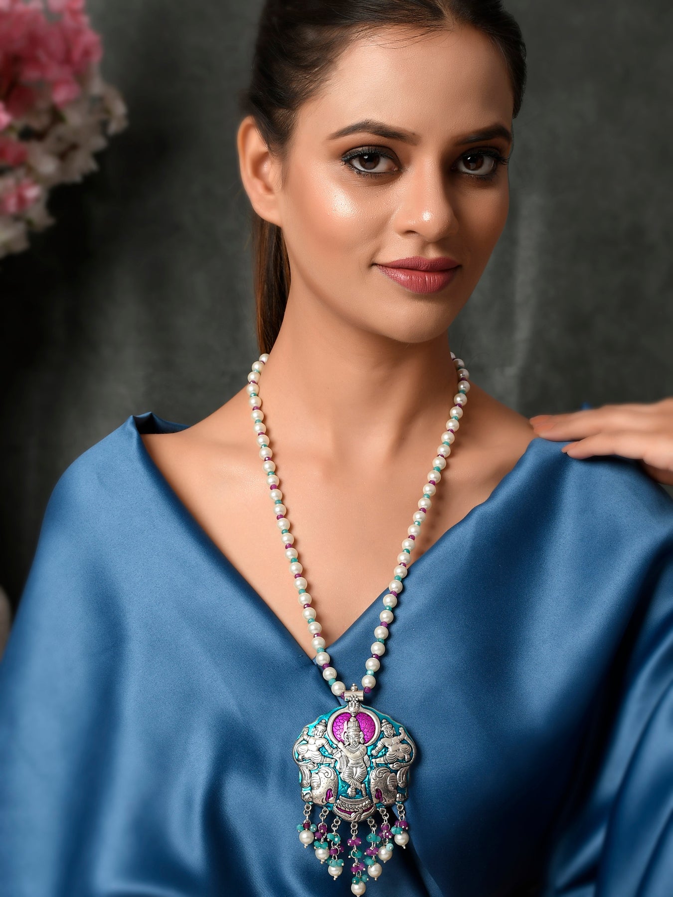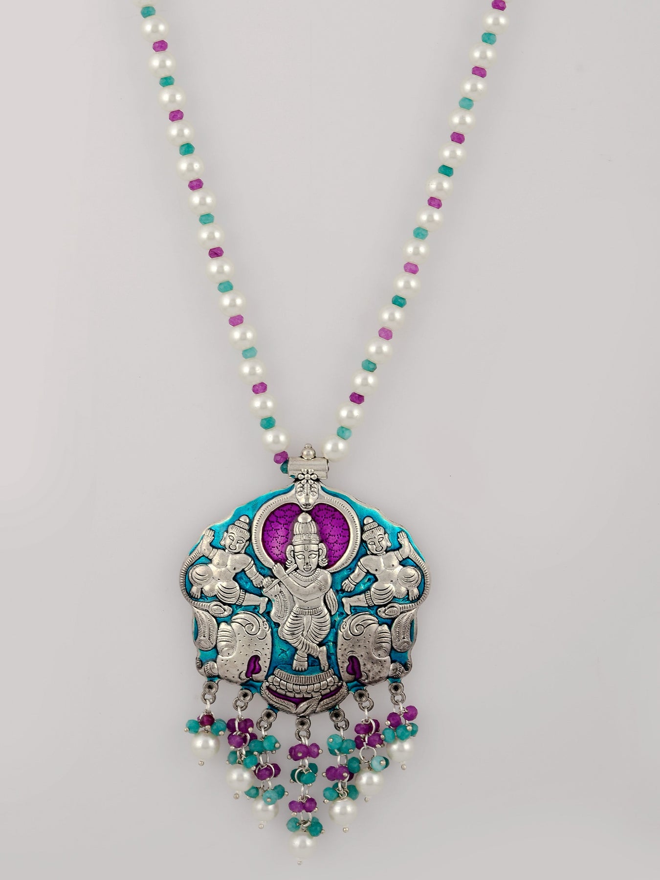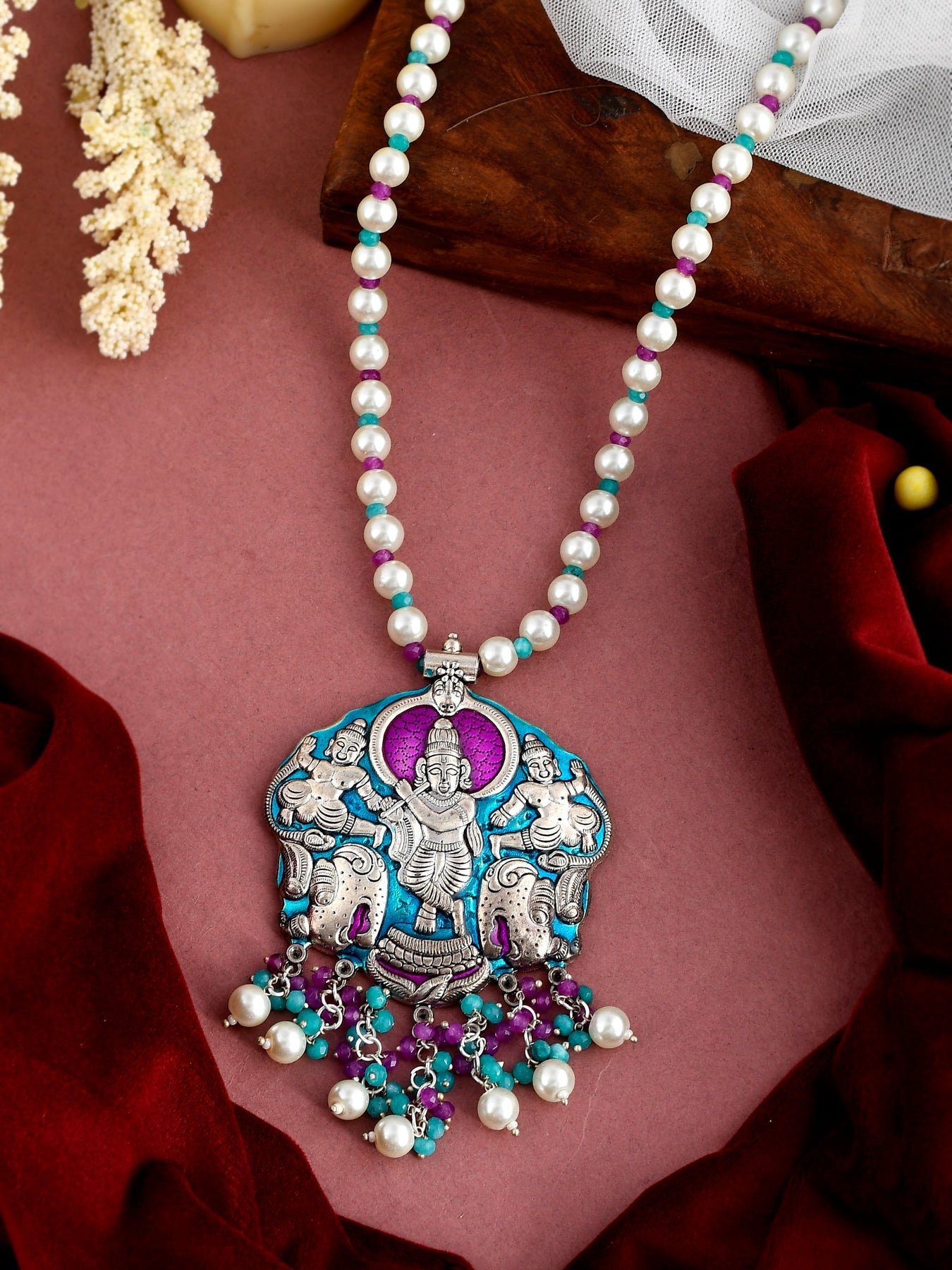Dastoor Women Silver-Toned Blue Brass Silver-Plated Necklace