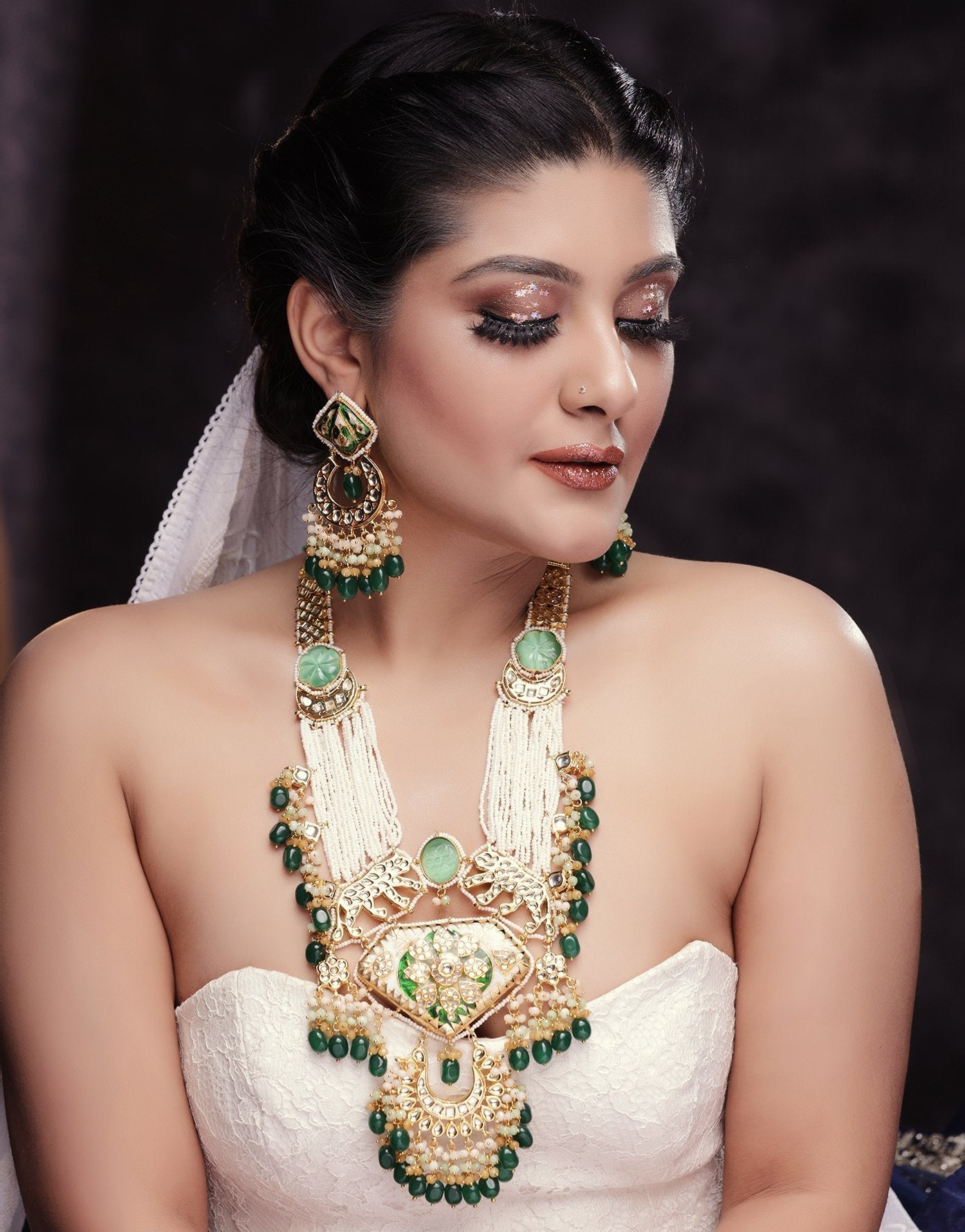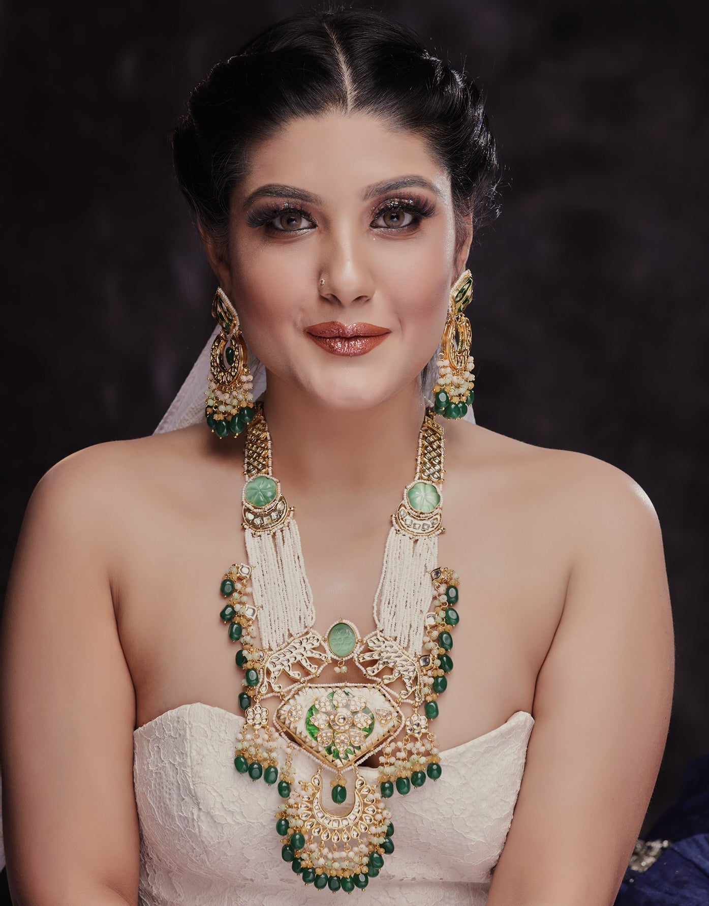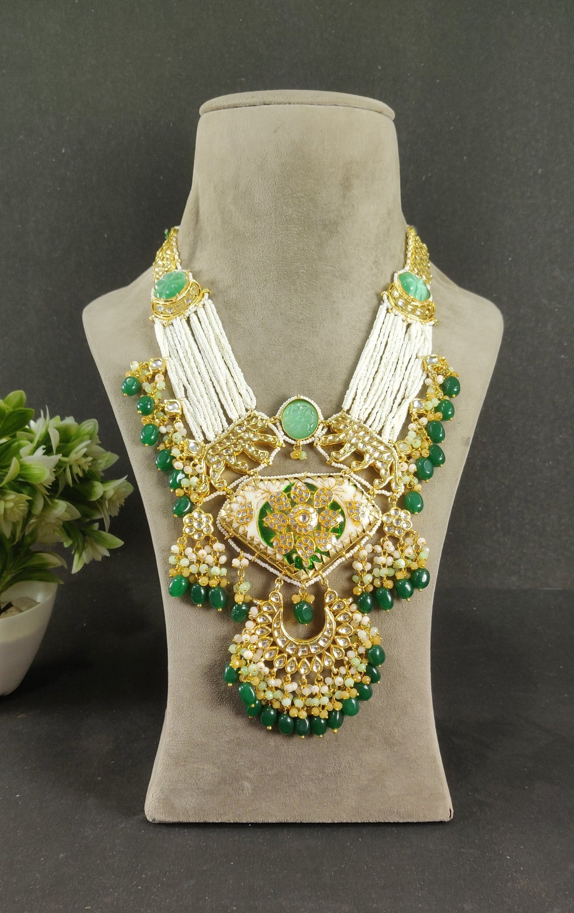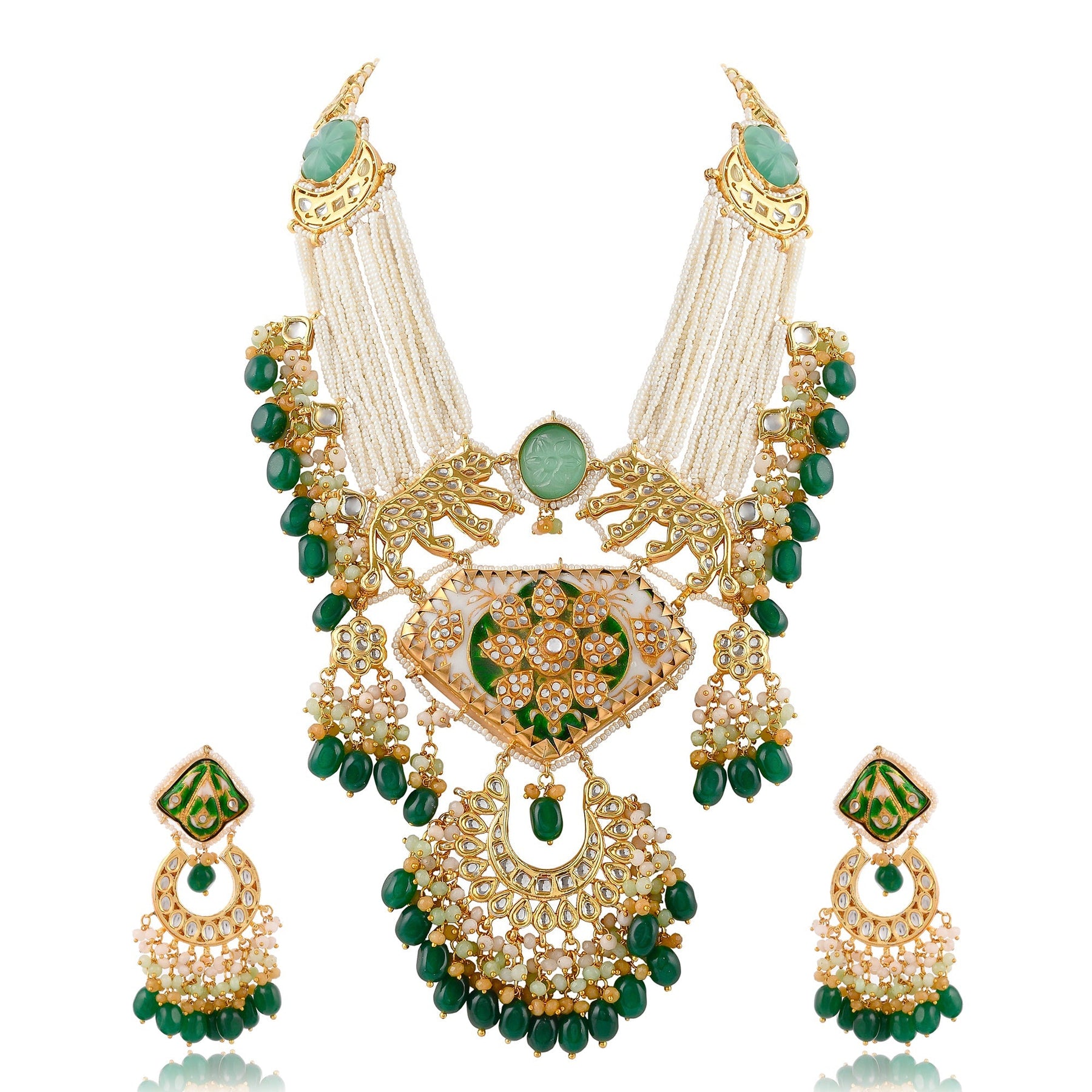 Dastoor Largish Abstract Pearl Green Long Necklace Set