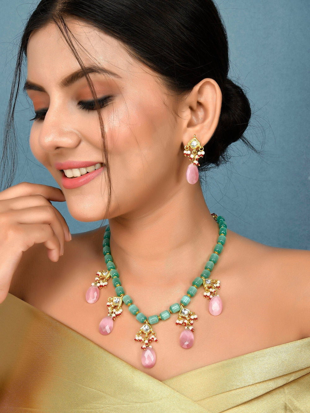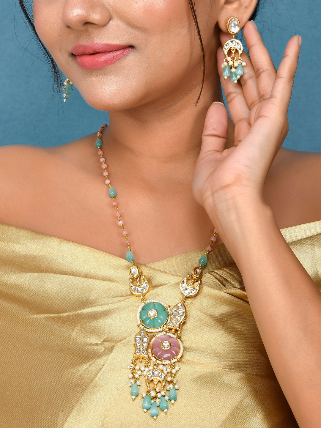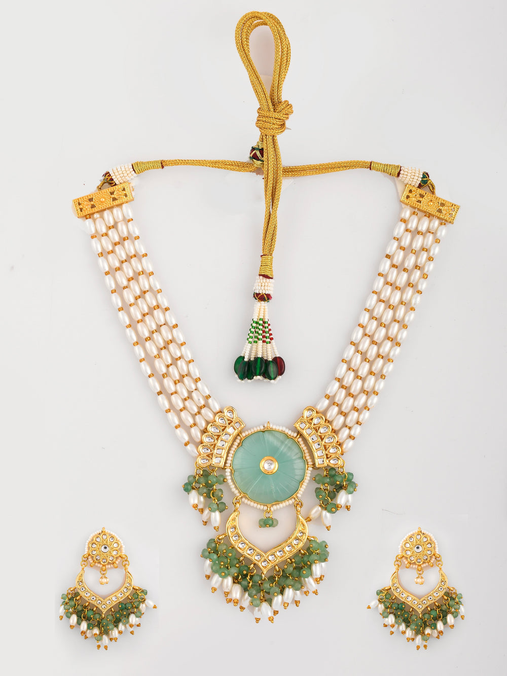 Dastoor Women Gold-Plated Red Kundan-Studded Jewellery Set