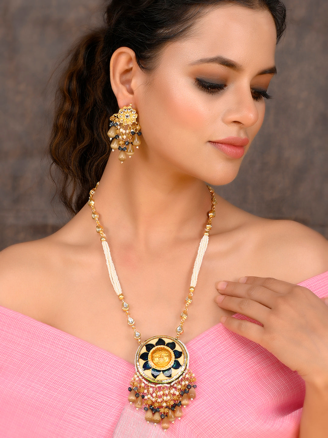 Dastoor Yellow White Brass Silver-Plated Necklace