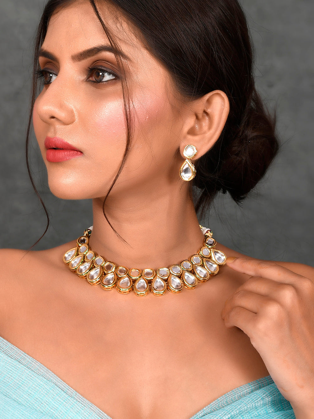 Dastoor Gold-Plated White Kundan Studded Jewellery Set