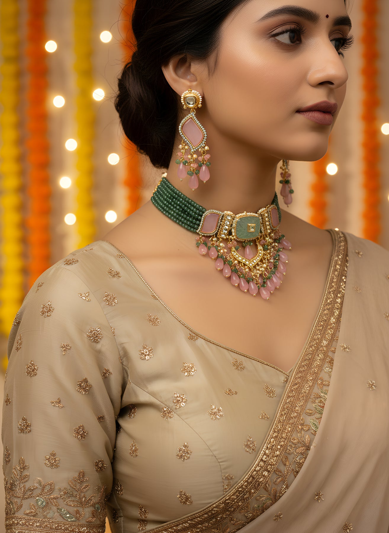 We represent our beautiful Hand Made 'Dastoor' Collection. This collection takes inspiration from detailed fragments of Jewellery. The Collection is designed for modern and designer look . This product has been crafted by hand and may have slight irregularities or imperfections in color or embellishment. These irregularities are the result of the human involvement in the process and add to the finished products charm while ensuring you have a one-of-a-kind piece.