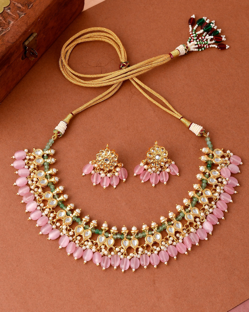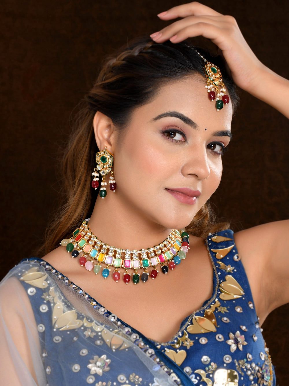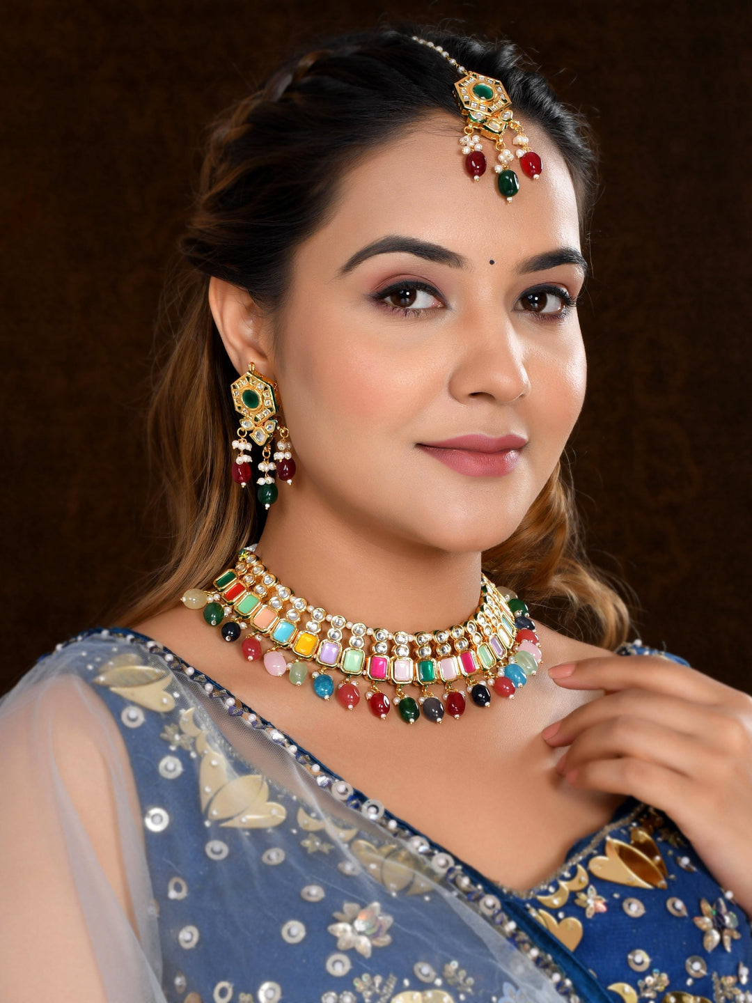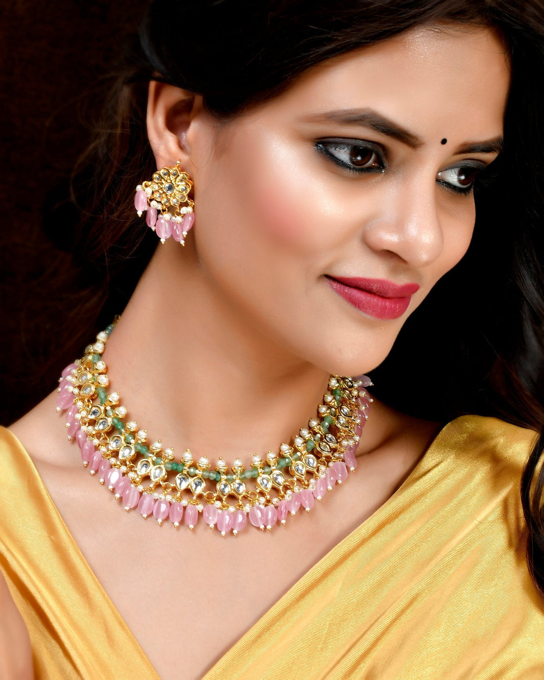 The semi-precious stones bring natural beauty, the kundan adds royal charm, the beads create graceful flow, and the meenakari adds colorful detailing – together forming jewellery that is unique, versatile, and timeless.