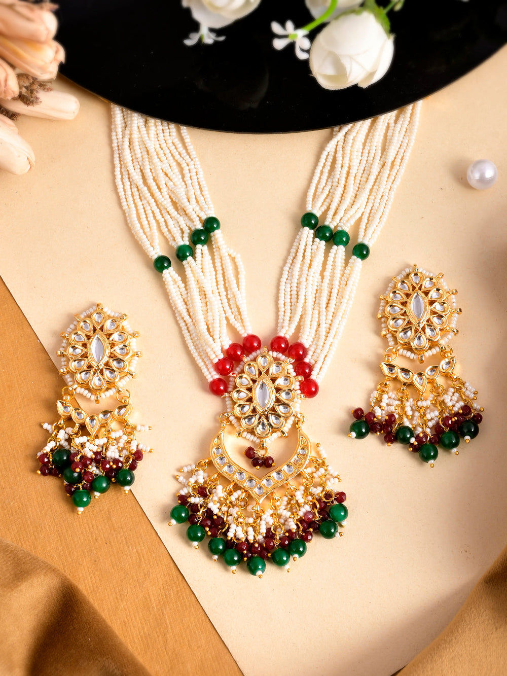 From statement necklaces and pendant sets to graceful earrings and malas, this collection celebrates artistry and craftsmanship at its finest. Perfect for weddings, festive occasions, and luxury gatherings, these designs are made to enhance your style with a touch of royalty.