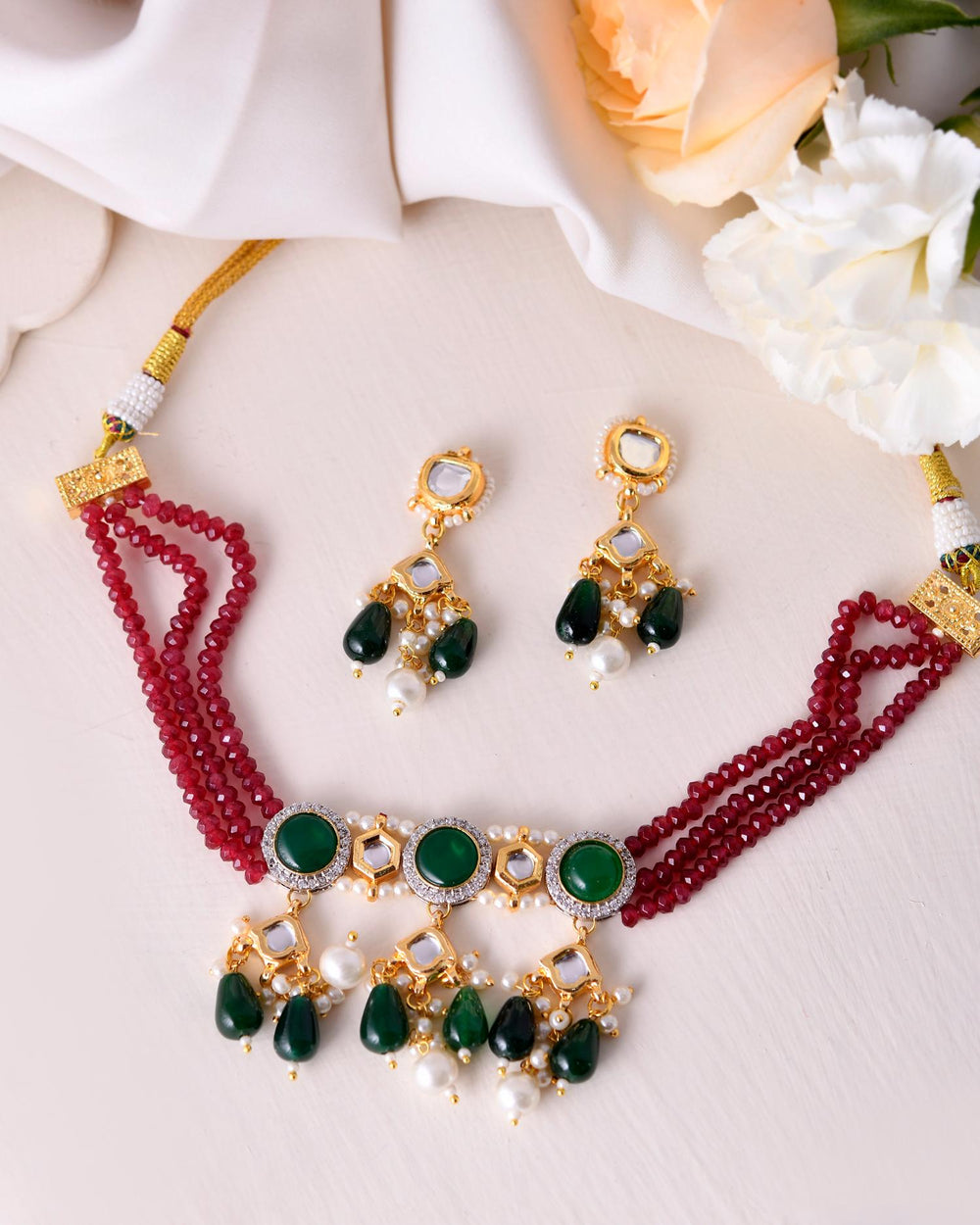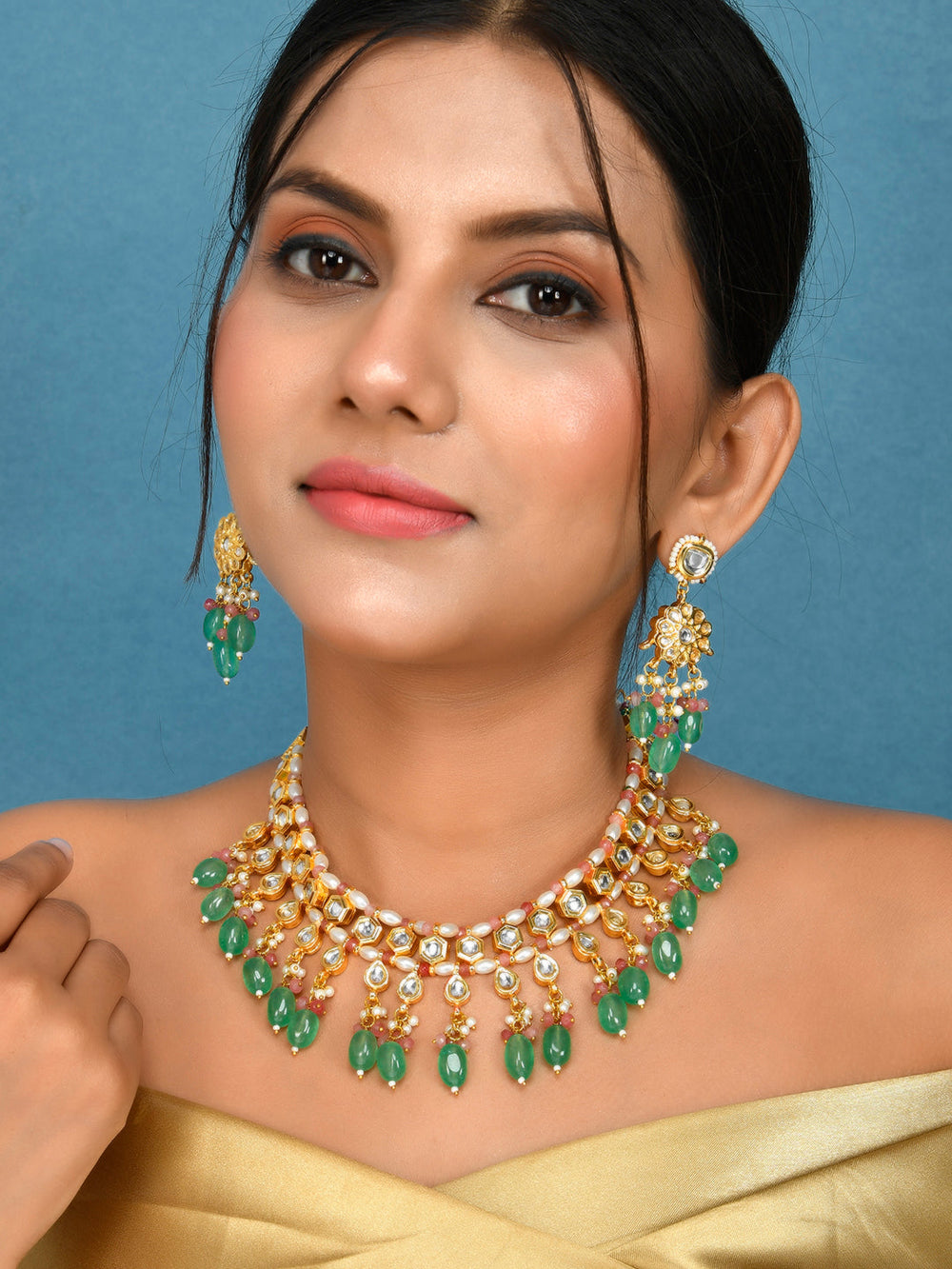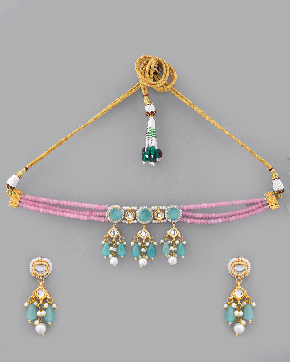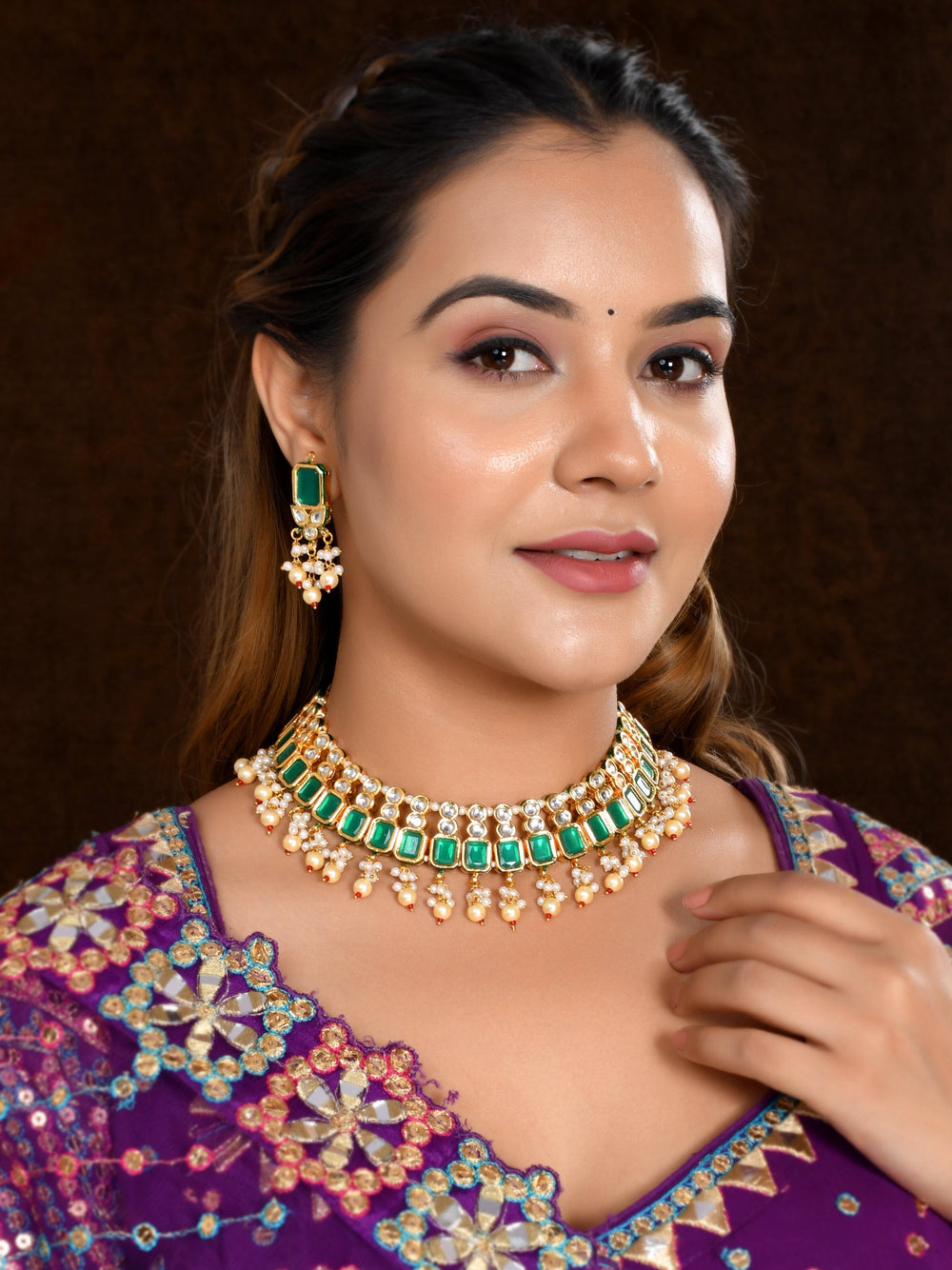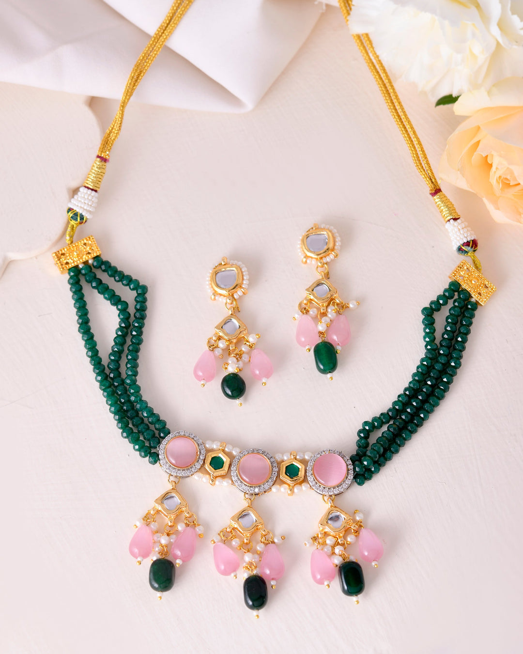 The semi-precious stones bring natural beauty, the kundan adds royal charm, the beads create graceful flow, and the meenakari adds colorful detailing – together forming jewellery that is unique, versatile, and timeless.