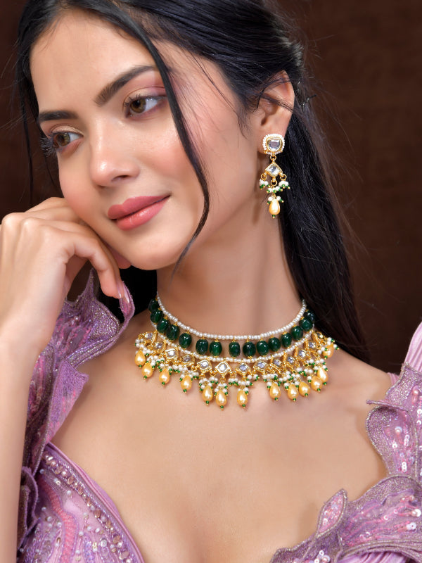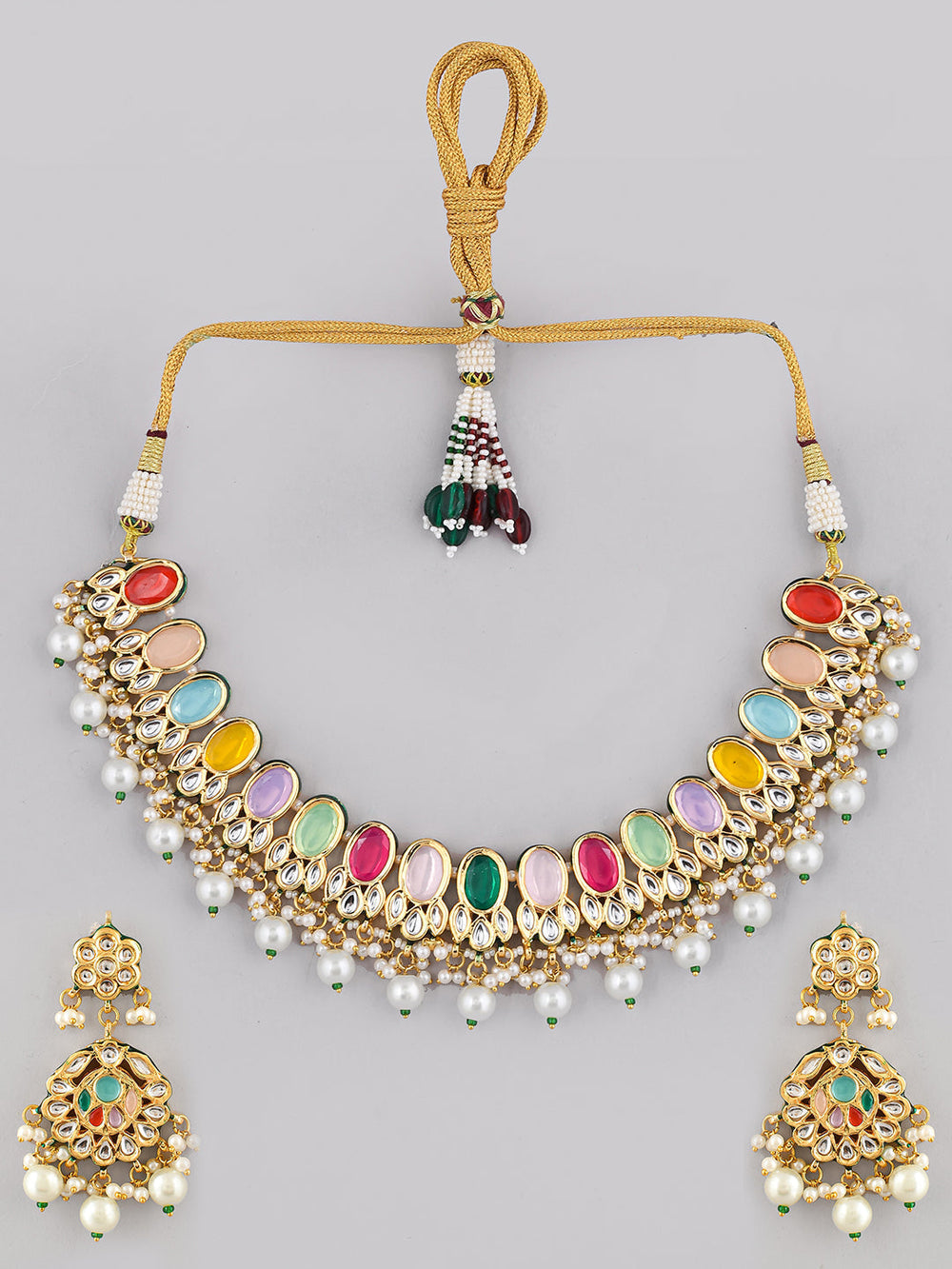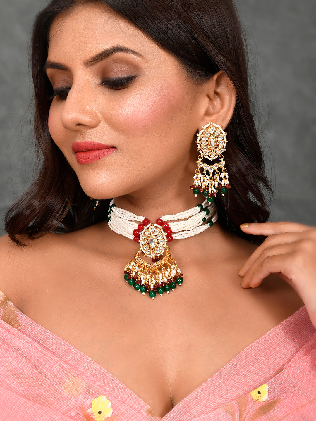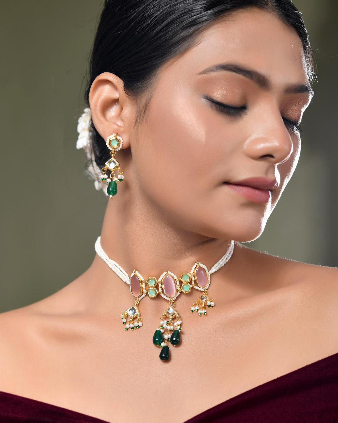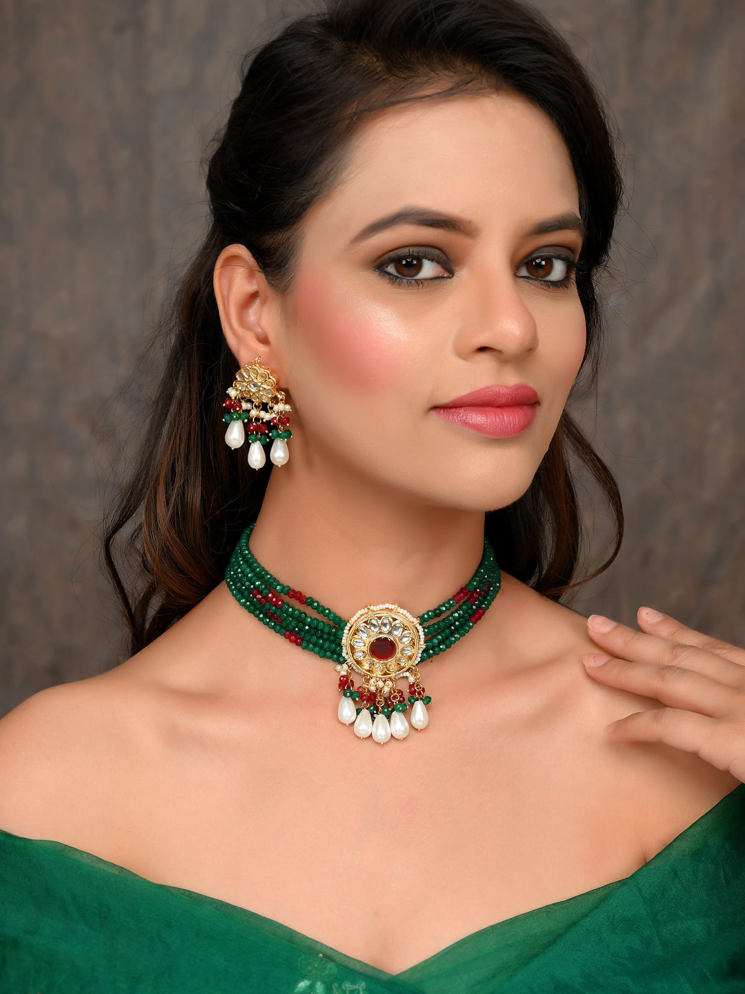 The semi-precious stones bring natural beauty, the kundan adds royal charm, the beads create graceful flow, and the meenakari adds colorful detailing – together forming jewellery that is unique, versatile, and timeless.