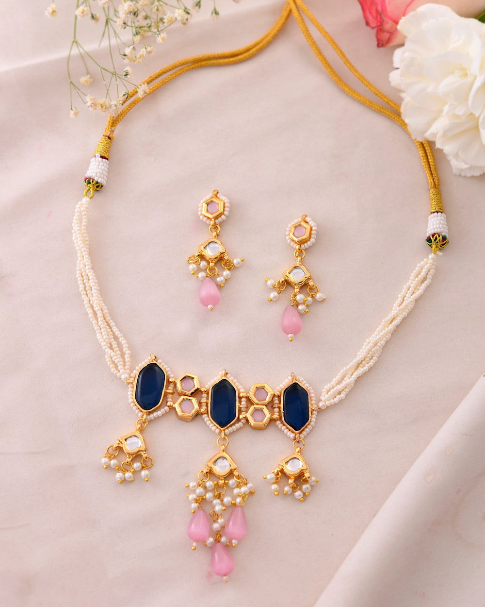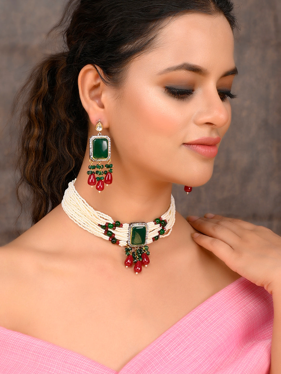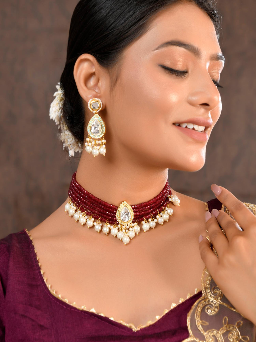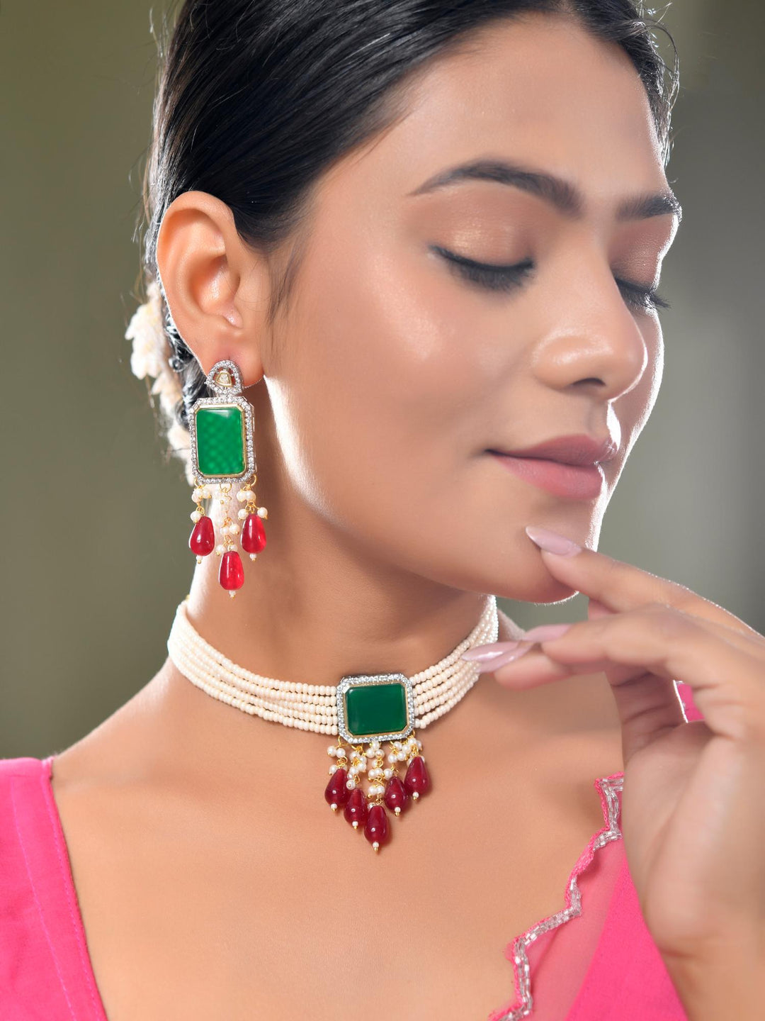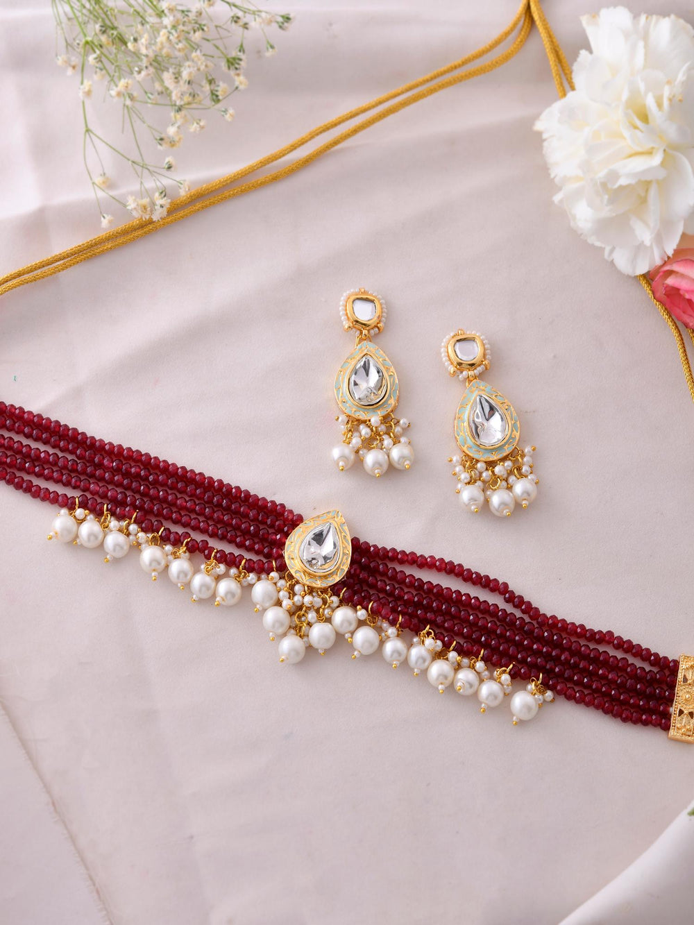 The semi-precious stones bring natural beauty, the kundan adds royal charm, the beads create graceful flow, and the meenakari adds colorful detailing – together forming jewellery that is unique, versatile, and timeless.