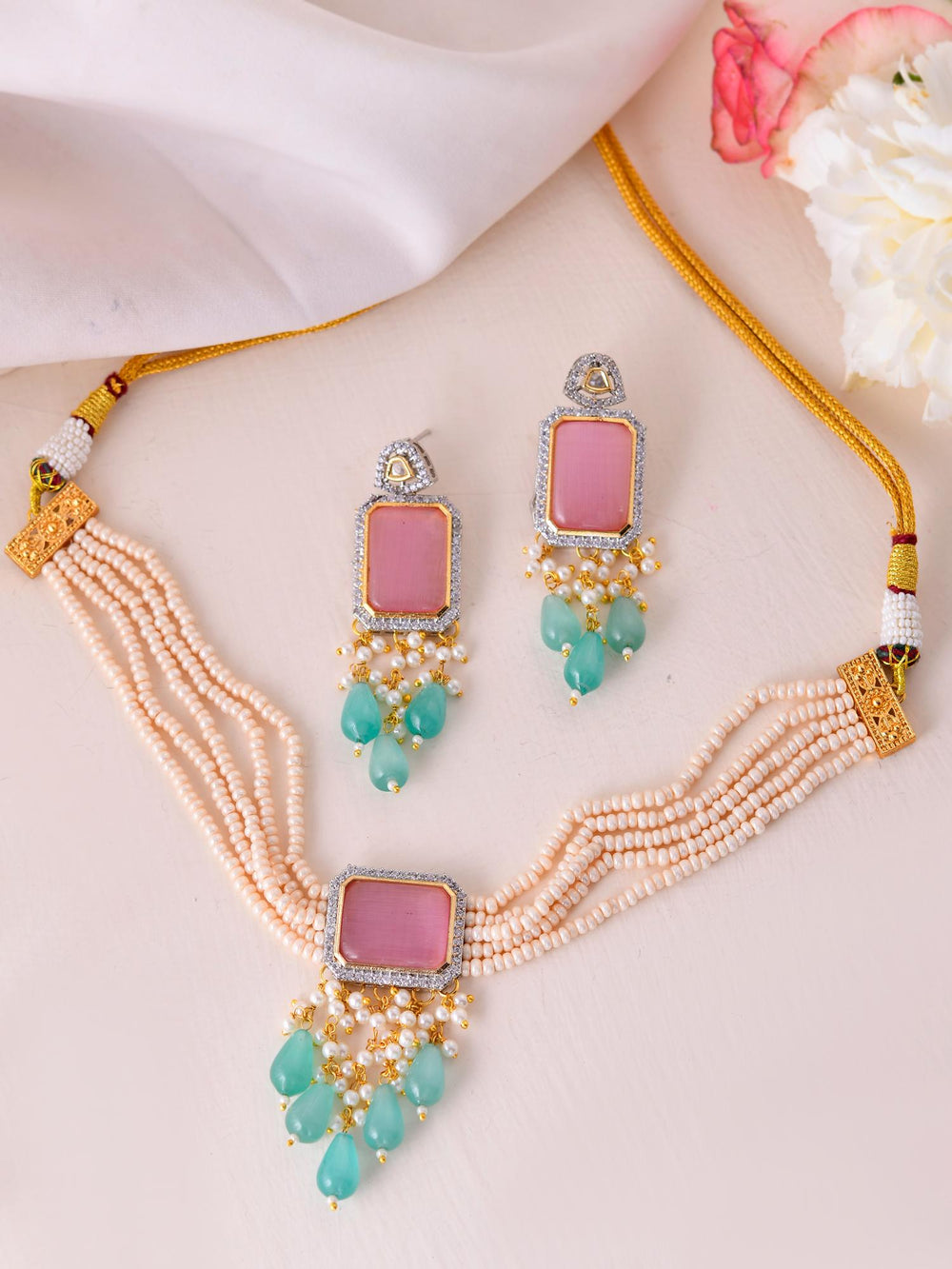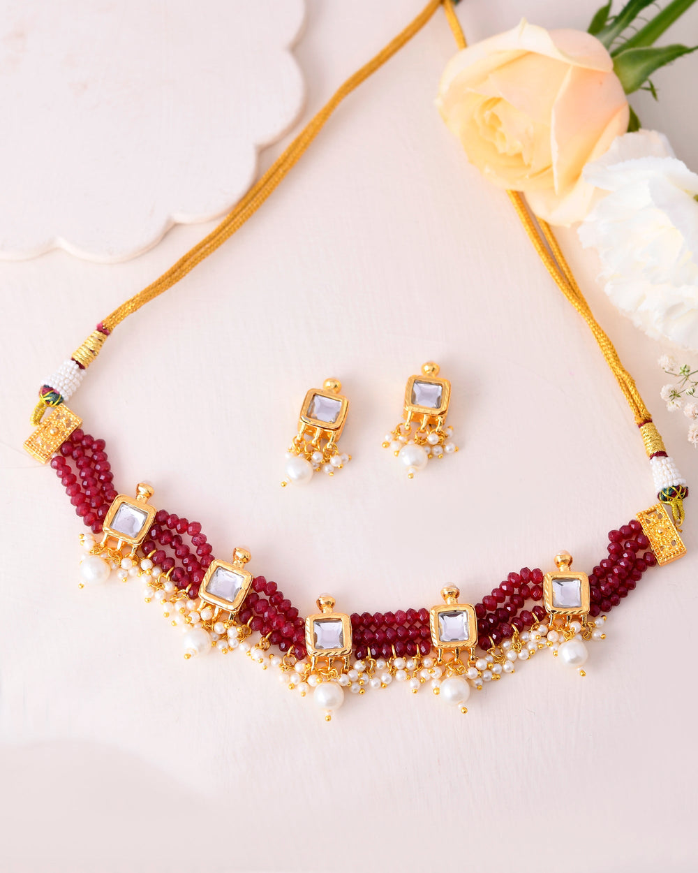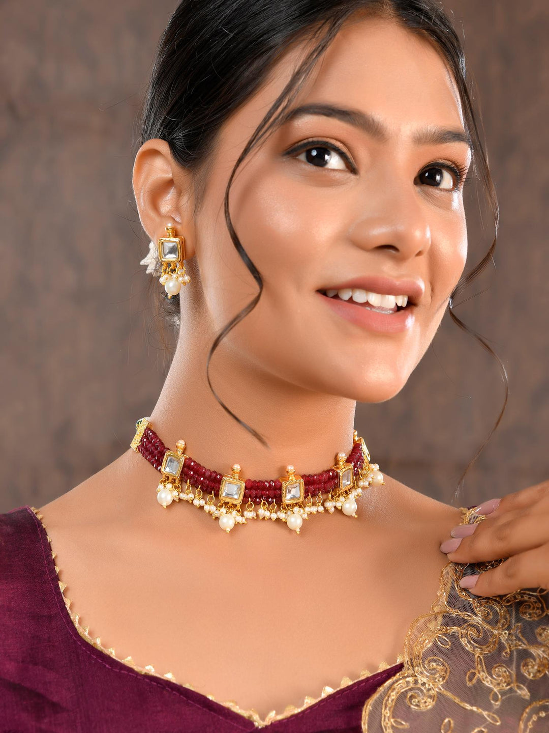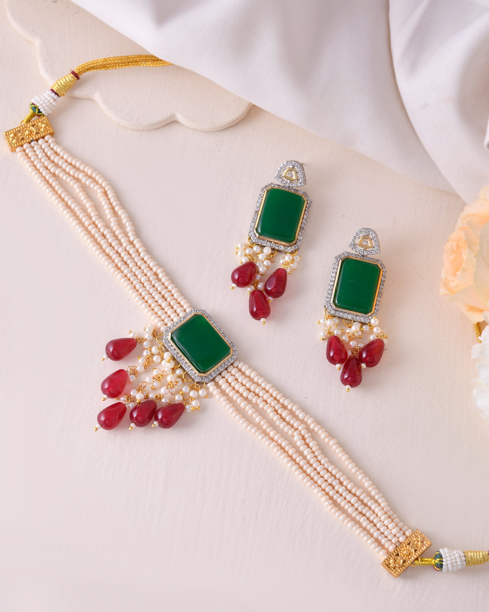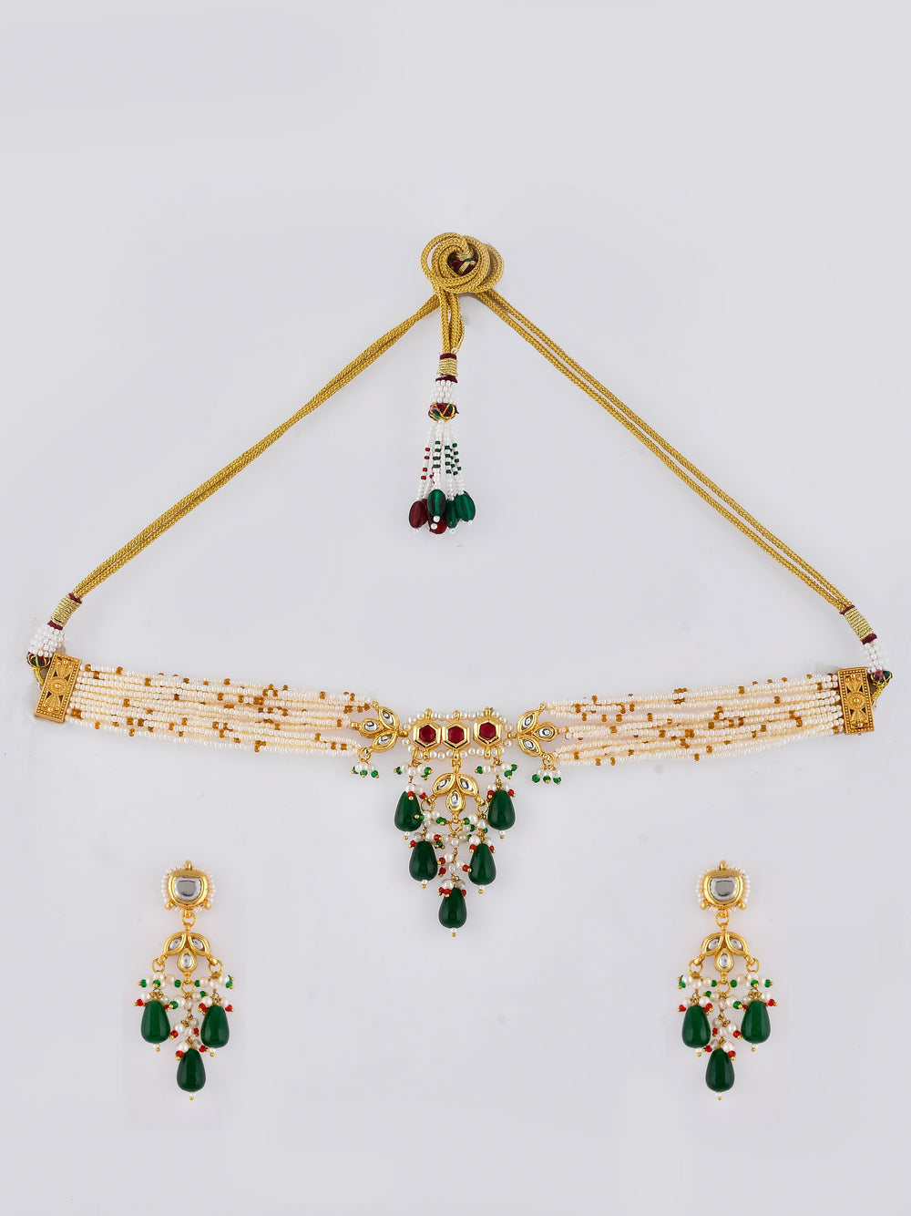 The semi-precious stones bring natural beauty, the kundan adds royal charm, the beads create graceful flow, and the meenakari adds colorful detailing – together forming jewellery that is unique, versatile, and timeless.