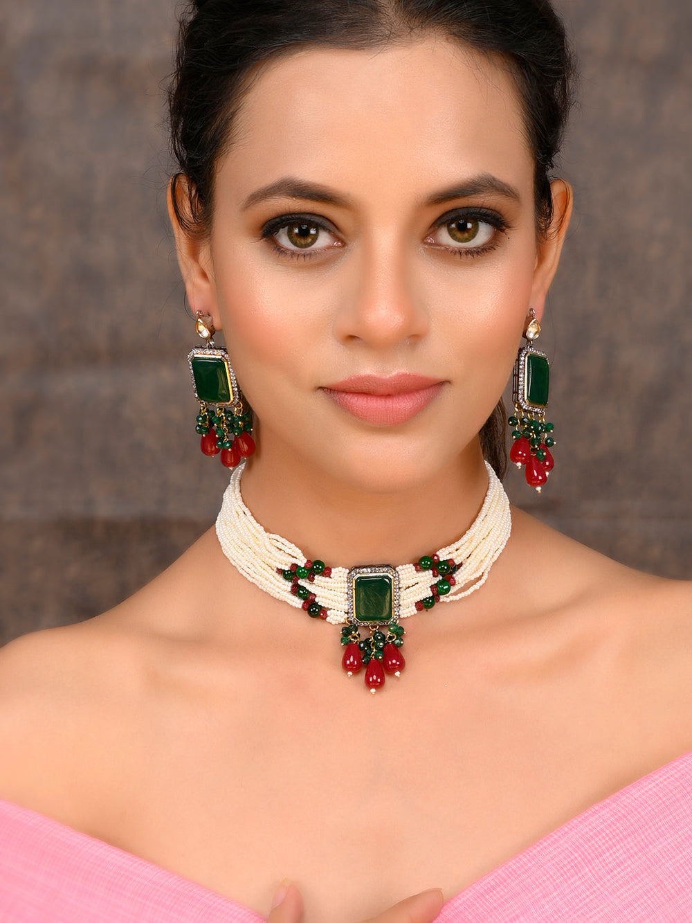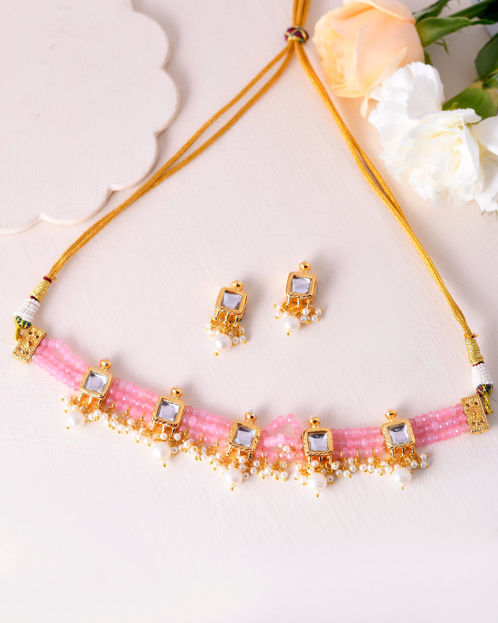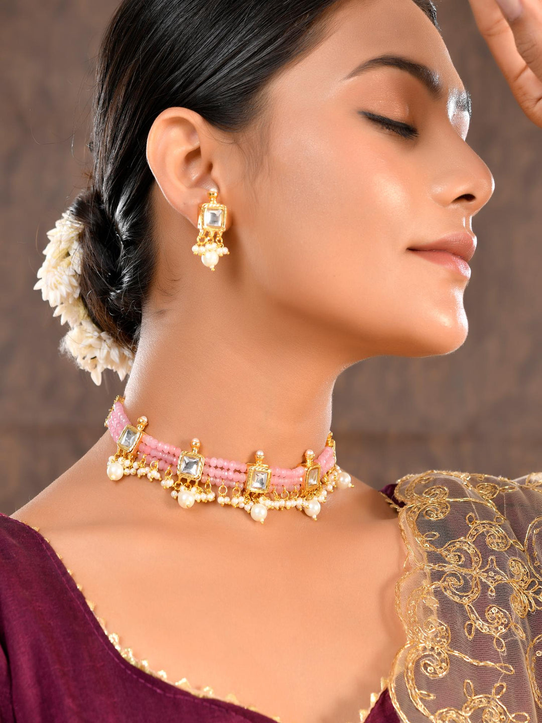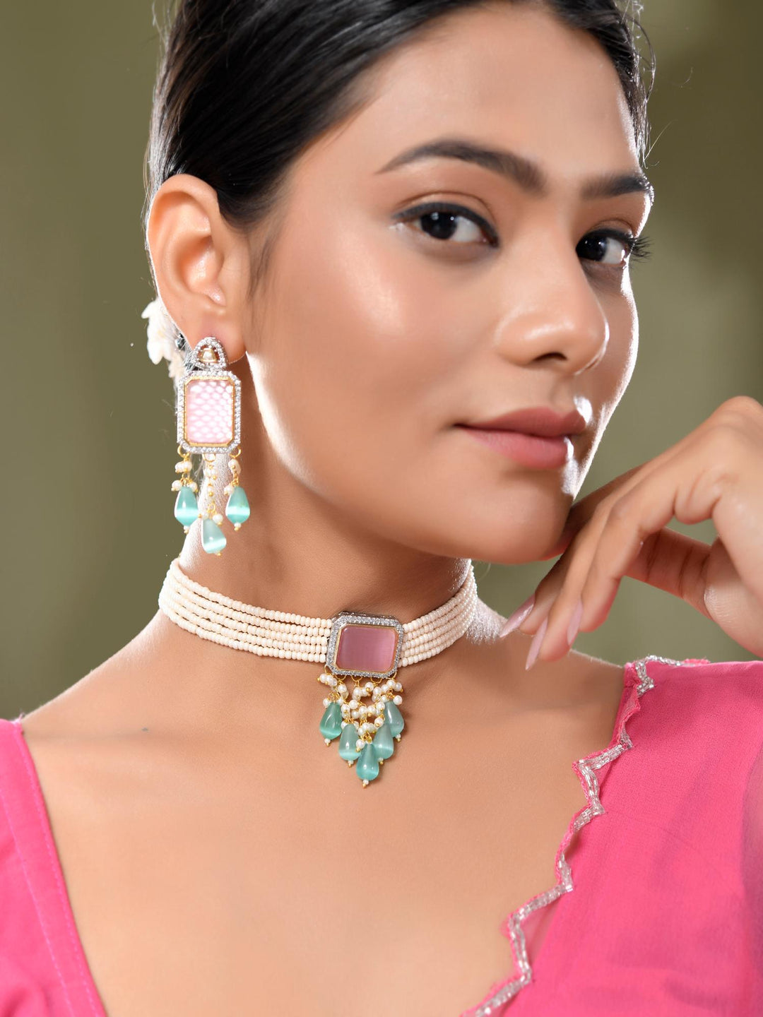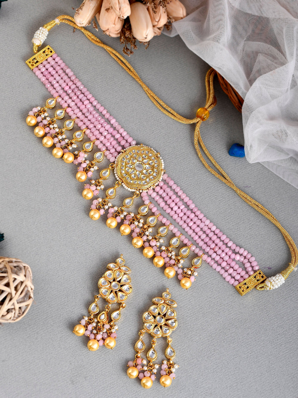 The semi-precious stones bring natural beauty, the kundan adds royal charm, the beads create graceful flow, and the meenakari adds colorful detailing – together forming jewellery that is unique, versatile, and timeless.