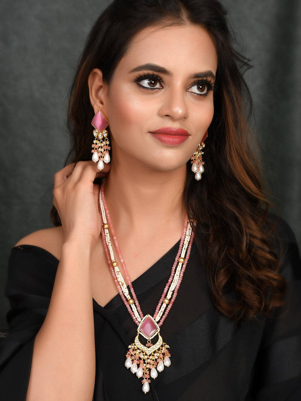 Dastoor Very Elegant Partywear Carvin Stone Necklace Set